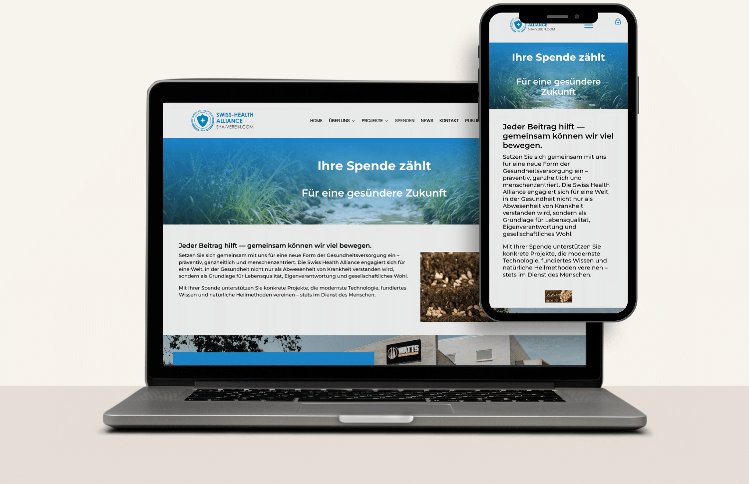 Für die Organisation Swiss-Health Alliance (SHA) baute ich eine Website, die ihre Projekte, Aktivitäten und Ziele übersichtlich darstellt und Besuchern einen klaren Einblick in ihre Arbeit ermöglicht.